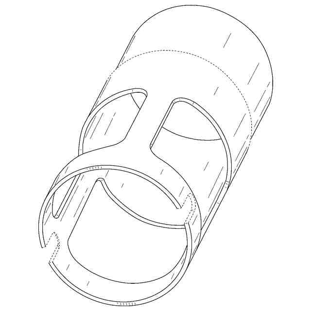 本願意匠に係る物品であるカテーテル血液ポンプ用の小型羽根車用のケージを、正面側から見た斜視図、背面側から見た斜視図、右側面図、左側面図、正面図、背面図、平面図、底面図にそれぞれ示す。また、同物品に羽根車を収容した状態を参考斜視図1、同物品が(カテーテル血液を送り出すために血液ポンプの一部を形成すると共に)患者の心臓内に配置された状態を参考斜視図2、にそれぞれ示す。部分意匠として意匠登録を受けようとする部分を実線で示し、部分意匠として意匠登録を受けようとする部分とその他の部分との境界のみを示す線を一点鎖線で示し、その他の部分を二点鎖線で示す。各部の表面部全面に表された細線は、いずれも立体表面の形状を特定するためのものである。