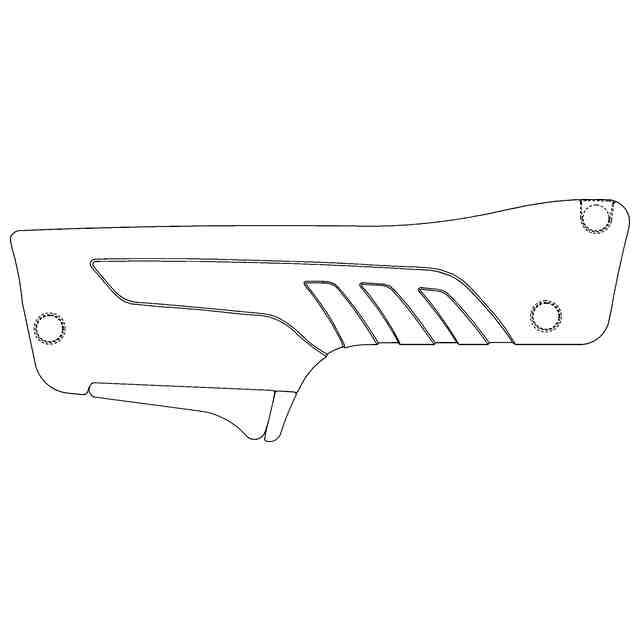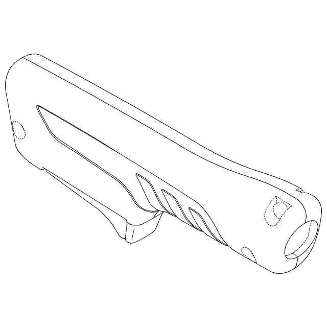 各斜視図に表れる途切れた線は、立体表面の形状を表すためのものである。意匠登録を受けようとする部分を実線で、それ以外の部分を破線で表した。