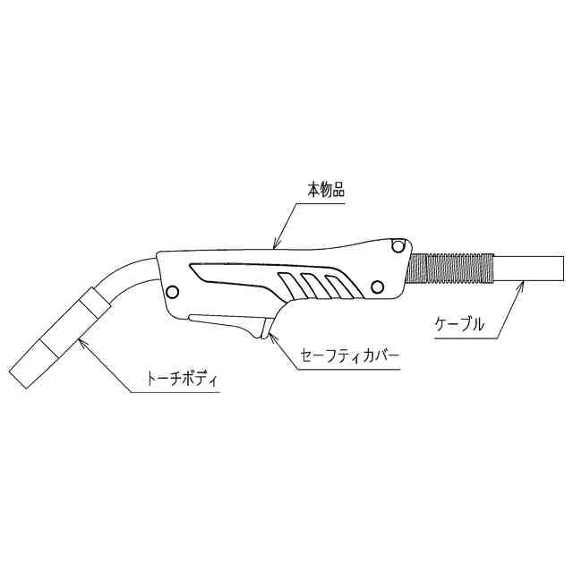 この意匠に係る物品は、溶接トーチ用のハンドルであって、使用状態を示す参考図に示すように、先端にトーチボディを、後端にケーブルを取り付けて使用するものである。