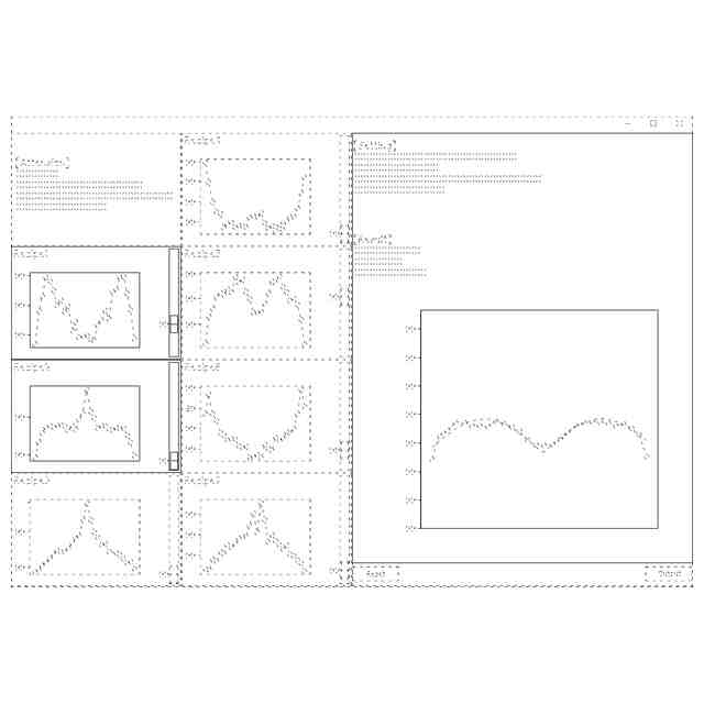 この画像は、ウェハのエッチング工程の処理結果を予測・分析するシステムのデータを表示するための画像であり、エッチング薬液の種類や使用量等の条件やその条件による処理結果等の情報を表示するものである。使用状態を示す参考図に示すように、左側にエッチング薬液の種類や使用量等の条件を示すグラフが配置され、右側に予測される処理結果を示すグラフが配置されている。例えば、左側に表示されたエッチング薬液の種類を選択又はスライドバーを動かして使用量を変化させると、それに従って右側の処理結果が変化するため、任意の条件に基づく処理結果を予測することができる。また、右側の処理結果を示すグラフを操作すると、それに従って左側の各エッチング薬液の使用量が変化するため、希望する処理結果から必要となる条件を予測することもできる。