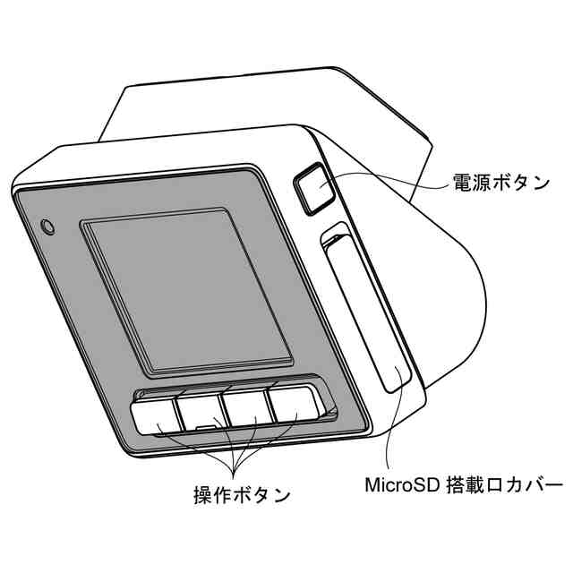 本物品は、前方を撮影するカメラを備えるドライブレコーダーである。「透明部分を示す参考斜視図」に示す操作部への操作により、常時録画による上書きがなされることなく、使用者が手動で動画の録画や風景等の静止画を記録することができる。