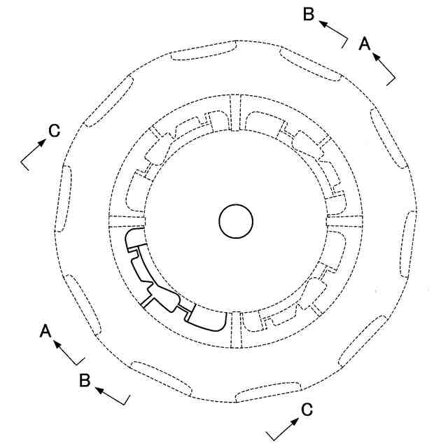 実線で表した部分が、部分意匠として意匠登録を受けようとする部分である。一点鎖線は、部分意匠として意匠登録を受けようとする部分とその他の部分との境界のみを示す線である。下方斜視図において、六面図以外に表わされた細線は、いずれも立体表面の形状を特定するためのものである。