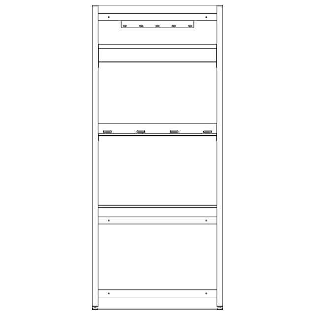 本物品は正面視上方に、両開き扉の収納部を備え、下方に引き出しを備えたものである。