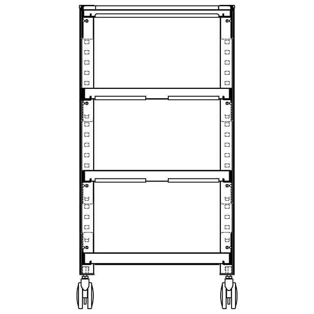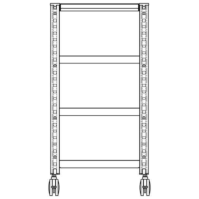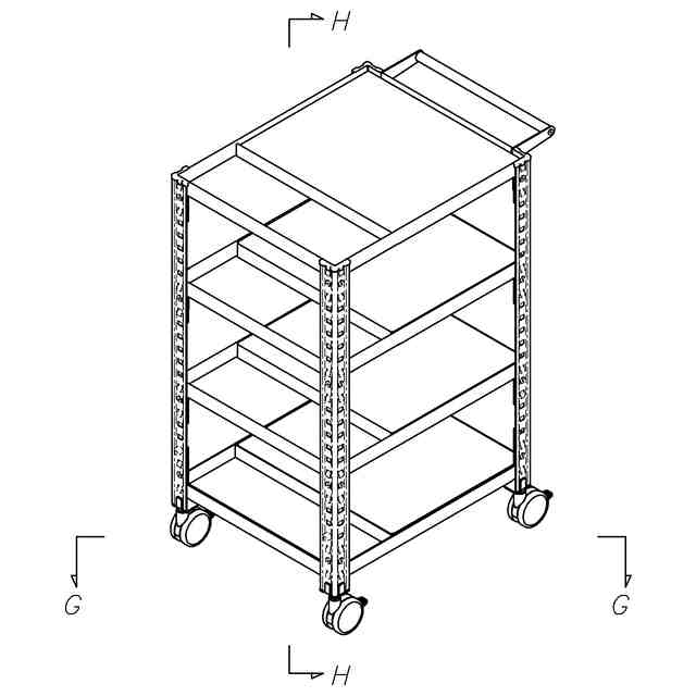 本物品は、四方に断面略L字状の支柱を備えたものである。支柱には上下方向に天板や棚を係止する為の複数の穴を備えており、係止位置を高さ方向において変更可能としたものである。