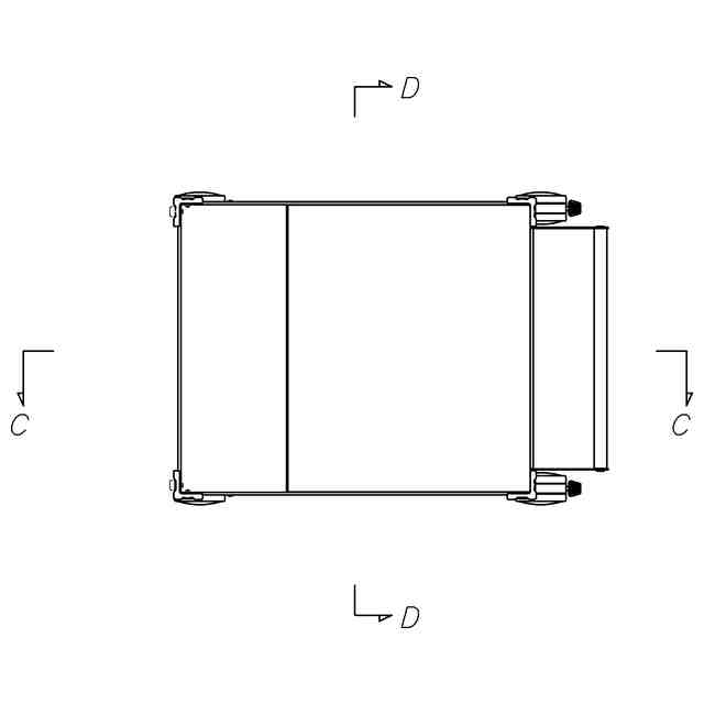 背面図は正面図と対称にあらわれるため省略する。実線で示した部分が、部分意匠として意匠登録を受けようとする部分である。一点鎖線は部分意匠として意匠登録を受けようとする部分とその他の部分との境界のみを示す線である。