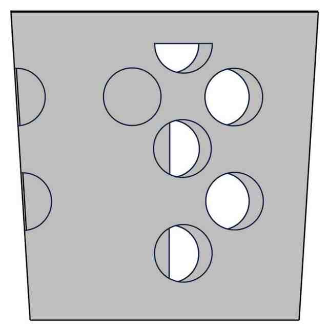 薄墨色で着色した部分以外の部分が部分意匠として意匠登録を受けようとする部分である。部分意匠として意匠登録を受けようとする部分に表れる複数の円形及び半円形は、透孔である。