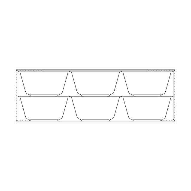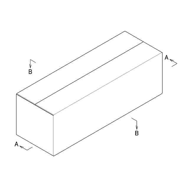 本願意匠の包装用箱のブランクシートは、製函後に底となる面の内側に入るフラップに、半円形の切欠を設けたものである。使用状態を示すA-A線参考断面図および使用状態を示すB-B線参考断面図に示すように、包装されるカップ麺等の脚部が半円形の切欠に入るようになっている。これにより、複数並べられる製品の上面の高さが揃うことで、製品の並びが箱の中でくずれにくく、箱の高さも抑えることができる。
