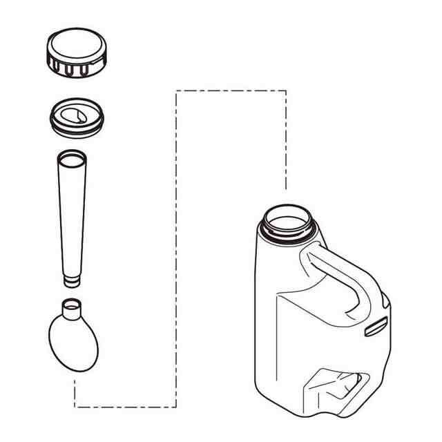 本物品は、本物品は、内部に融雪剤や農薬などの粒剤や液剤、粉体等の流体を格納し、吐出口からこの流体を散布するための装置である。正面視で容器の上側と右下側に取っ手を設けたことにより、散布時に使用者が把持しやすくしている。本物品は、吐出口を有する容器本体と、吐出口を閉鎖する蓋部分と、蓋部分の内部において固定される固定部分と、固定部分と接続して延在する筒部分と、筒部分の先端に取り付けられる先端部分と、分解可能に備える。吐出口、固定部分、筒部分、先端部分は連通する。蓋部分において、固定部分は天面向き及び底面向きに固定可能である。底面向きに固定した際には、筒部分及び先端部分が容器本体の内部に格納され、格納状態として持ち運びを容易にし、天面向きに固定された際には、筒部分及び先端部分が容器本体から突出し、使用状態として流体を散布できる。