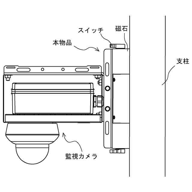 本物品は、建築物の柱や梁等に対して監視カメラ等の機器を取り付けるための取付具である。
