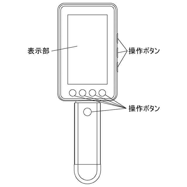 本物品は電子ルーペであって、カメラを通して拡大した対象物の画像を表示し、また、カメラ機能によりその画像を撮影・保存することができる。また、本物品は縦向き及び横向きのいずれの方向にも保持して使用できる。
