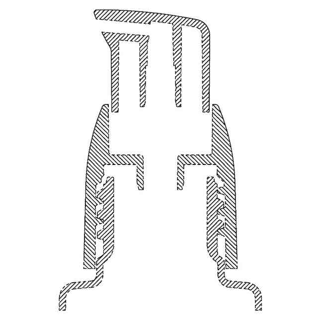 実線で表された部分が、意匠登録を受けようとする部分である。「斜視図1」「斜視図2」「意匠登録を受けようとする部分の拡大斜視図1」「意匠登録を受けようとする部分の拡大斜視図2」「内部機構を省略したC-C間のA-A拡大端面図」及び「内部機構を省略したC-C間のB-B拡大端面図」を含めて意匠登録を受けようとする部分を特定している。一点鎖線は、意匠登録を受けようとする部分とその他の部分との境界のみを示す線である。「形状を示す参考図1」「形状を示す参考図2」及び「形状を示す参考図3」において、意匠の表面に表された濃淡は立体表面の形状を表すための陰影である。