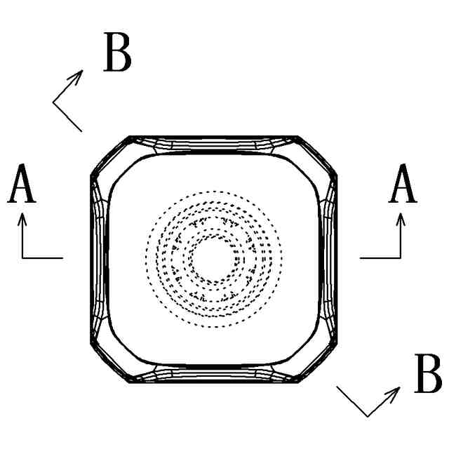 実線で表された部分が、部分意匠として登録を受けようとする部分である。一点鎖線は部分意匠として意匠登録を受けようとする部分とその他の部分との境界を示す線であり、意匠を構成しない。「平面側斜視図」および「底面側斜視図」において紫色で着色した部分以外の部分が、部分意匠として意匠登録を受けようとする部分であり、表面全面に表された濃淡は、いずれも立体表面の形状を特定するためのものである。
