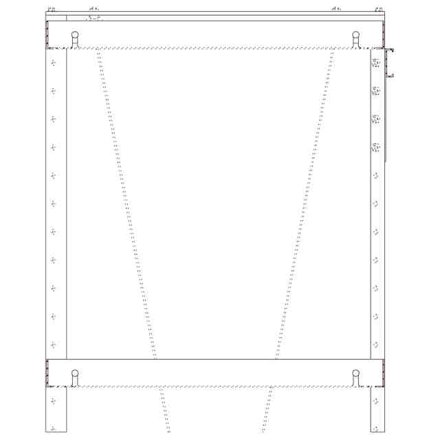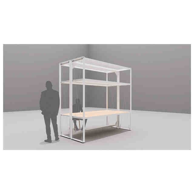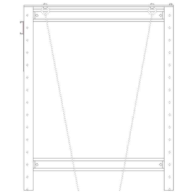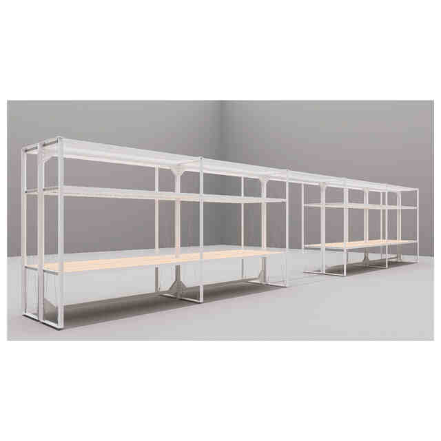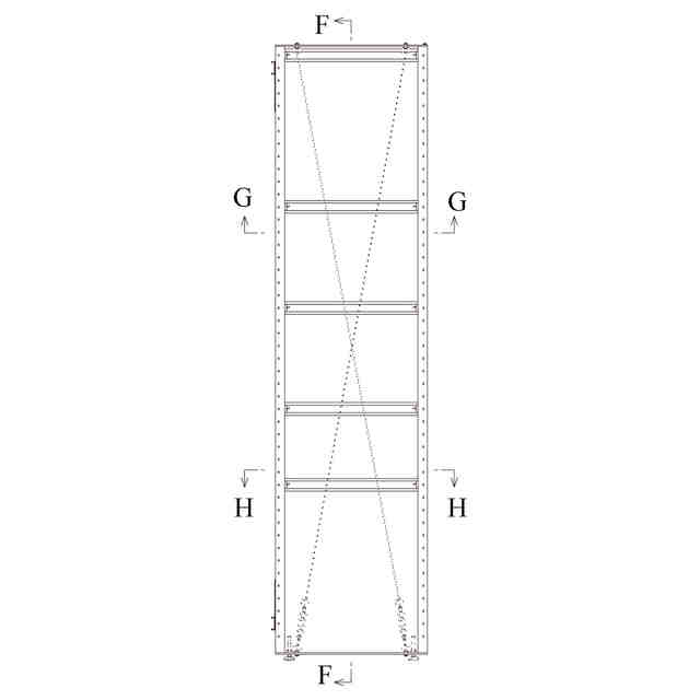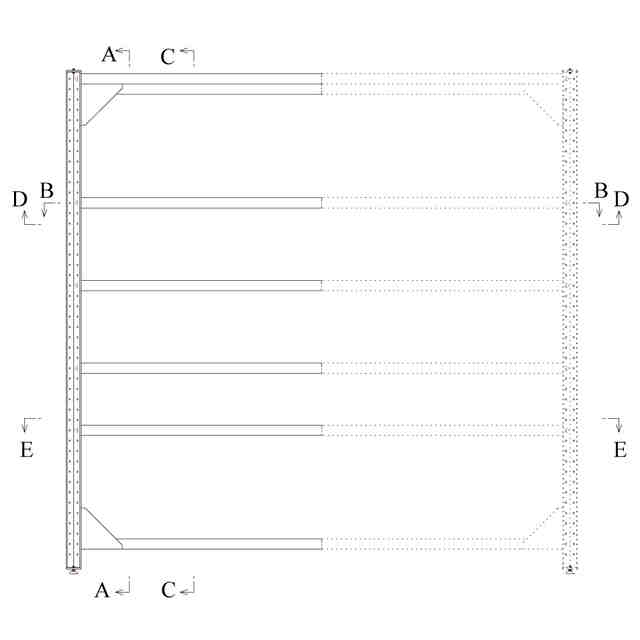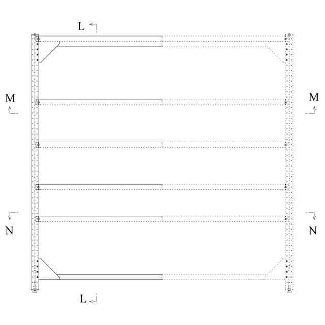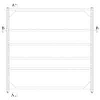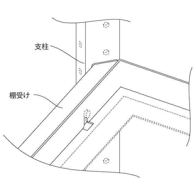本物品は棚受けの位置を変更可能な整理棚で、「参考部分斜視図1」及び「参考部分斜視図2」に示すように、棚受けの両端を支柱に固定して使用する。本物品は正面図において、縦約2.4メートル、横約2.4メートルの大きさである。本物品は「使用状態を示す参考図1」及び「使用状態を示す参考図2」に示すように、前後又は左右に複数連結して使用することができる。複数の本物品を連結する際には、隣り合う本物品の支柱の孔に連結金具を取り付け固定する。