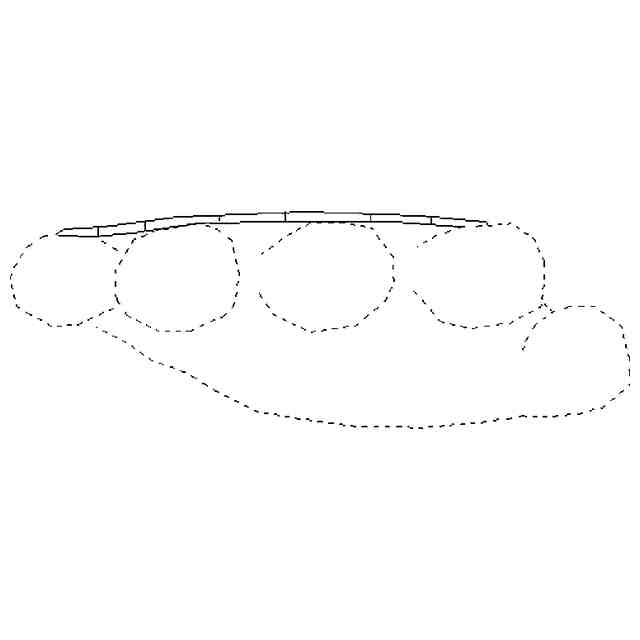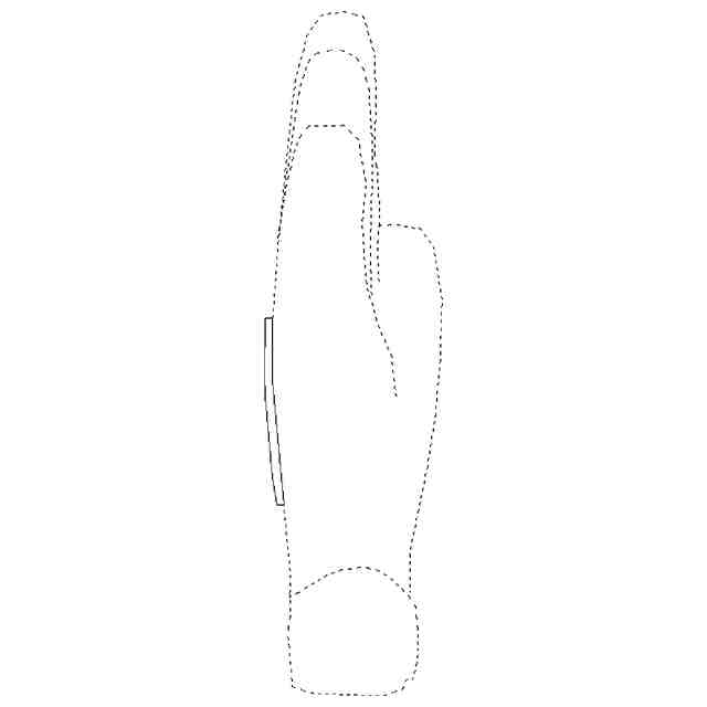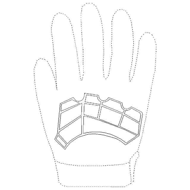 実線で表した部分が、部分意匠として意匠登録を受けようとする部分である。本願は、左右対称の一対のうち右方のみを表した。参考図で指示した保護材は、樹脂製である。保護材は、溝により表面が複数のブロックに分割された形状を有する。説明図に保護材の断面図を示す。断面図には、保護材の周縁の断面形状、溝の断面形状を示す。保護材の周縁及び溝の断面形状は、いずれの位置でも同じである。