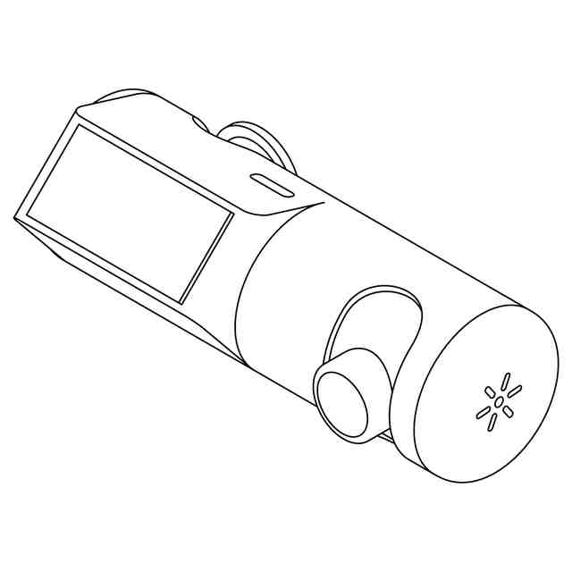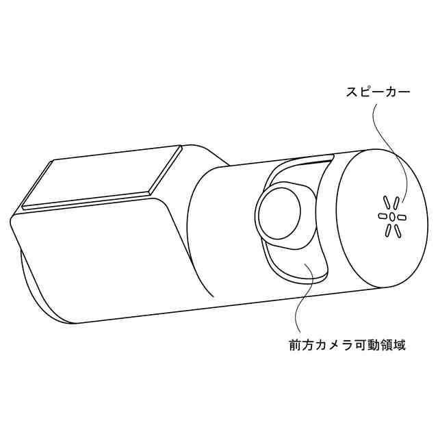 本物品は、車両のフロントガラスに設置し、前方と車内を撮影するカメラを備えるドライブレコーダーである。「各部の名称を示す正面側参考斜視図」及び「各部の名称を示す背面側参考斜視図」に示すように前方カメラと車内カメラには画角を調整することができる可動領域が設けられている。また、本物品は、通信機能を備えており、使用者が手動で緊急通報ボタンを押すことで車両外部との通話が可能となり、これによって、緊急事態の通報等を迅速に行うことができる。