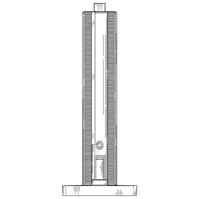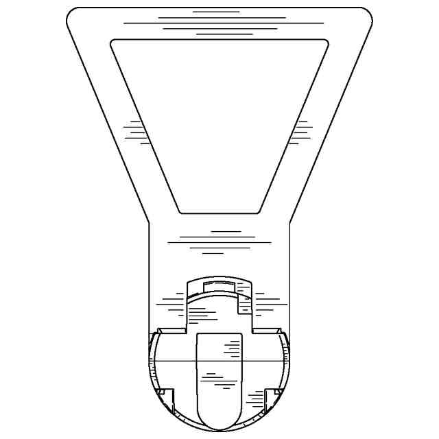 図面に表されている破切れた細線及び破切れた平行状細線は、模様を表す線ではなく、いずれも立体表面の形状を表す線である。平面、正面及び右側面側斜視図、及び、正面図に表されている傾斜平行状細線を施した部分は透明である。また、平面、正面及び右側面側斜視図、及び、正面図に表されている傾斜平行状細線は、いずれも模様を表す線ではなく立体表面の形状を示す線である。
