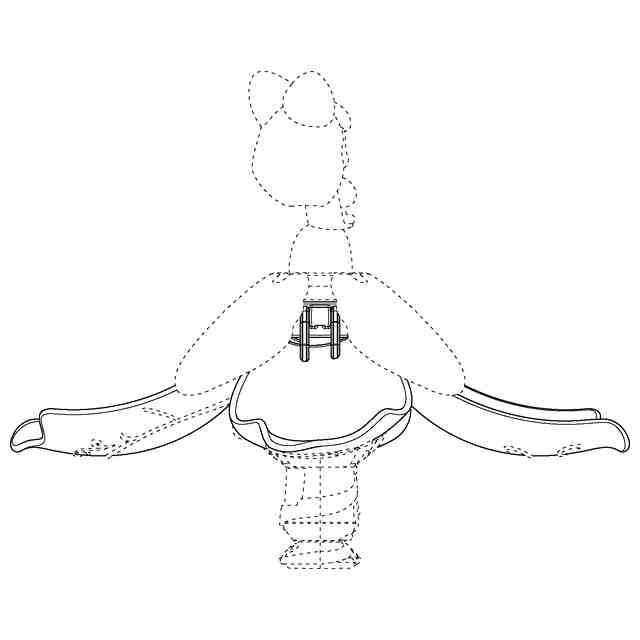 本物品は、人形おもちゃである。「参考図」は「斜視図1」に示す状態から「正面図」および「背面図」の中央部に位置する破線で示した複数のパーツを削除した状態を表しており、実線で示す部分は、「参考図」に示すように連結されている。