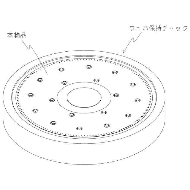 本物品は、使用状態を示す参考図に示すように、ウェハ保持チャックの上面中央に取り付けて使用されるものであって、外縁部に沿って複数のパージ孔が形成されているものである。
