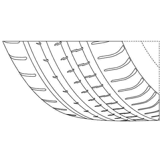 実線で表した部分が、部分意匠として意匠登録を受けようとする部分である。斜視図、正面図、背面図、右側面図、左側面図、平面図、底面図、A-B部分拡大図、C-C部分拡大図及びD-D端面図を含めて意匠登録を受けようとする部分を特定している。