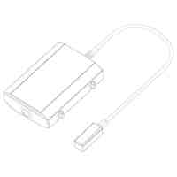 本物品は、例えば、スマートフォン等の情報通信端末機を充電するための充電台である。本物品は、複数の着脱可能な「調整部材(アジャスター)」と一体化しており、当該アジャスターの交換により、形状や大きさが異なる各種情報通信端末機を装着することが可能である。情報通信端末機を装着し、デスクに載置した状態の例を「使用状態を示す参考図1」に表わす。また、他のアジャスターを装着した状態の例を「使用状態を示す参考図2」に表わす。なお、本物品の底面には、別途ケーブルを保持するための「凹溝」及び「凹部」が存在する。
