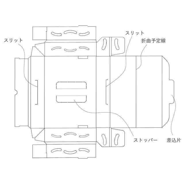 赤色に着色した部分以外の部分が部分意匠として意匠登録を受けようとする部分である。正面板及び背面板にはそれぞれ蓋の差込片を差込み可能なスリットが形成されている。