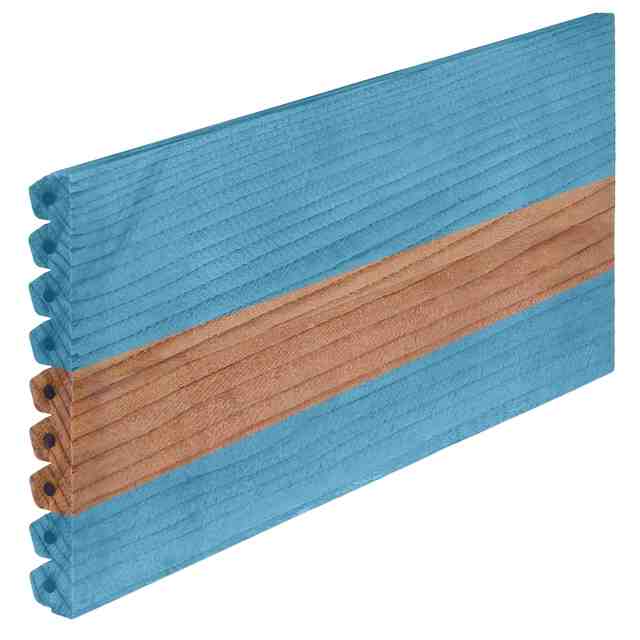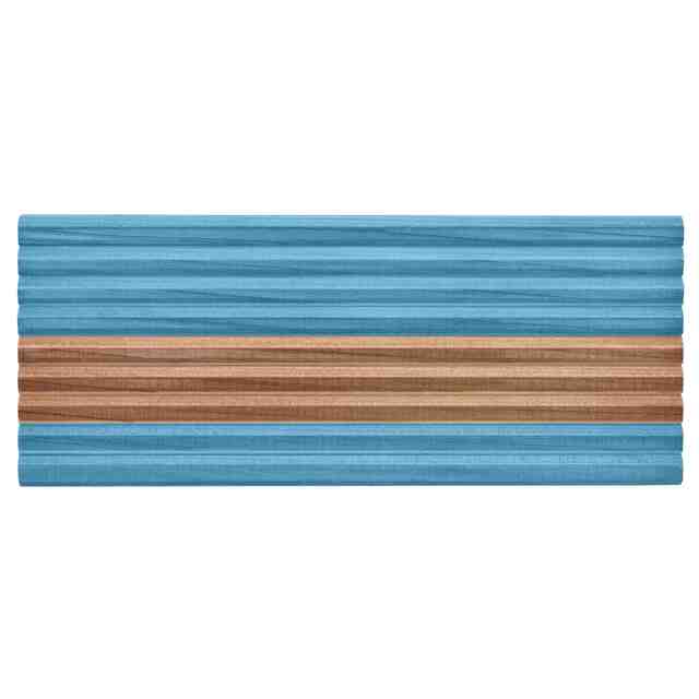 本物品は、鉛筆の製造工程を用いて製作される装飾板であって、装飾板の内部には、左右側面図、正面側斜視図、背面側斜視図に現れるように鉛筆の芯が収容された装飾板である。本物品は、天井、壁、扉、間仕切り、家具等の装飾板に利用される。本物品を使用する際は、本物品の複数個を左右及び上下に方向に連続して密接に配置して使用される。
