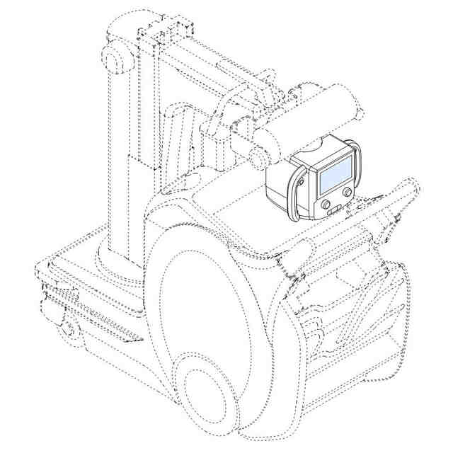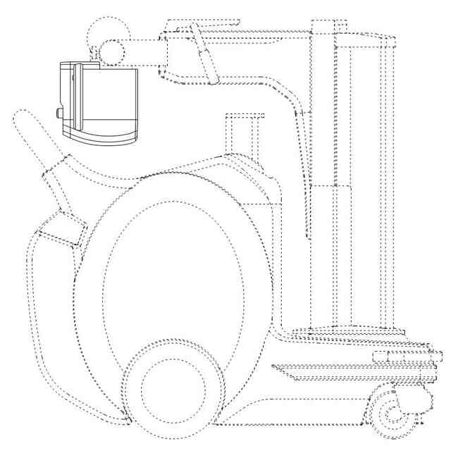 この出願の意匠に係る物品は、病院の廊下や病室等のベッドサイドへ移動させての撮影が可能なように移動用車輪やハンドルを備えた医療用放射線撮影機である。放射線照射部を先端に備えたアーム(腕)が支柱に接続されており、使用状態をあらわす参考図に示すように、支柱を伸縮させたり、支柱の回りを回転させることにより、患者の患部に放射線照射部を位置させて撮影を行うことができる。