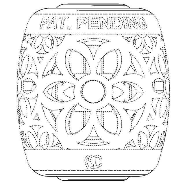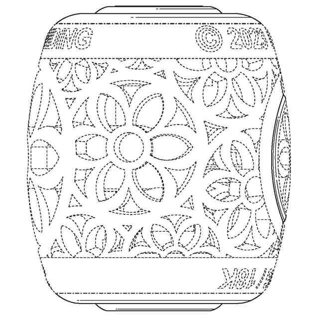 実線で表した部分が意匠登録を受けようとする部分である。一点鎖線は、意匠登録を受けようとする部分とその他の部分との境界のみを示す線である。各図の表面に表わされた細線は、いずれも立体表面の形状を特定するためのものである。