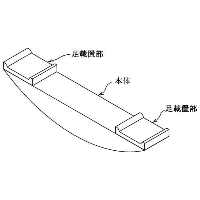 本物品は、「参考斜視図」に図示したように、本体の上部に一対の足載置部を本体に対して水平回動するように軸着した運動器具であって、例えば、「使用状態を示す参考図」に図示したように、椅子等に着座した状態で各足載置部に載置した足を交互に踏み込み、本体を左右方向に揺動させることで、足踏み運動を行うことができ、また、足を交互に前方に突き出し本体を水平回動させることで、膝関節を動かす運動を行うことができ、更に、足をその場で水平回動させて、足首やふくらはぎのストレッチ運動を行うことができる。本物品は、木等適宜な部材で構成する。