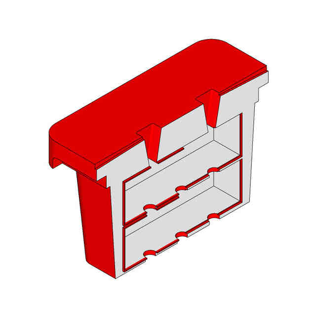 必要図において赤色に着色された部分を除く部分が、部分意匠として意匠登録を受けようとする部分である。各図に表された濃淡は、立体表面の形状を表す。A-A線断面図に表された緑色は、断面形状のみを表す。2つの型本体は同一形状であるため重複する図面を省略する。背面図は正面図と同一に表れるため省略する。左側面図は右側面図と同一に表れるため省略する。外枠の背面図は外枠の正面図と同一に表れるため省略する。外枠の左側面図は外枠の右側面図と同一に表れるため省略する。中枠の背面図は中枠の正面図と同一に表れるため省略する。中枠の左側面図は中枠の右側面図と同一に表れるため省略する。