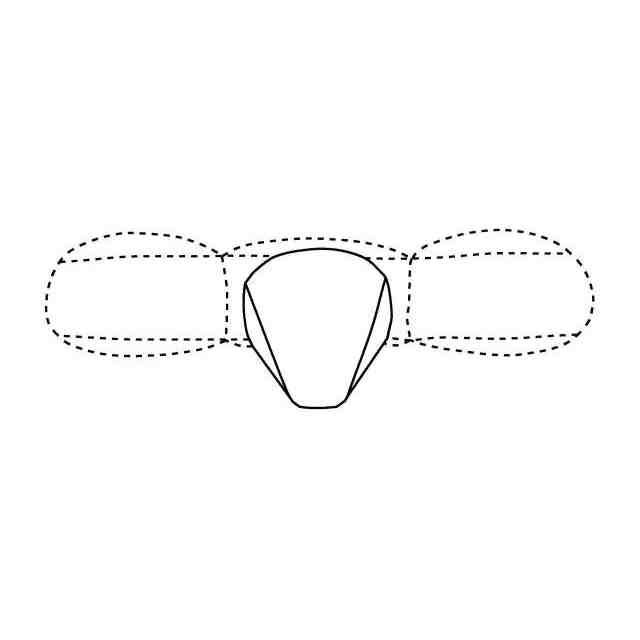 実線で表された部分が、部分意匠として意匠登録を受けようとする部分である。左側面図は右側面図と対称に表れるため省略する。