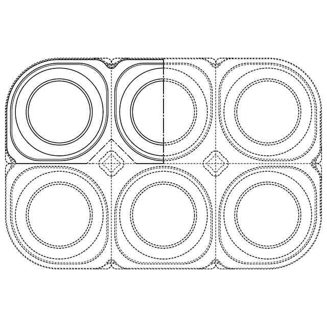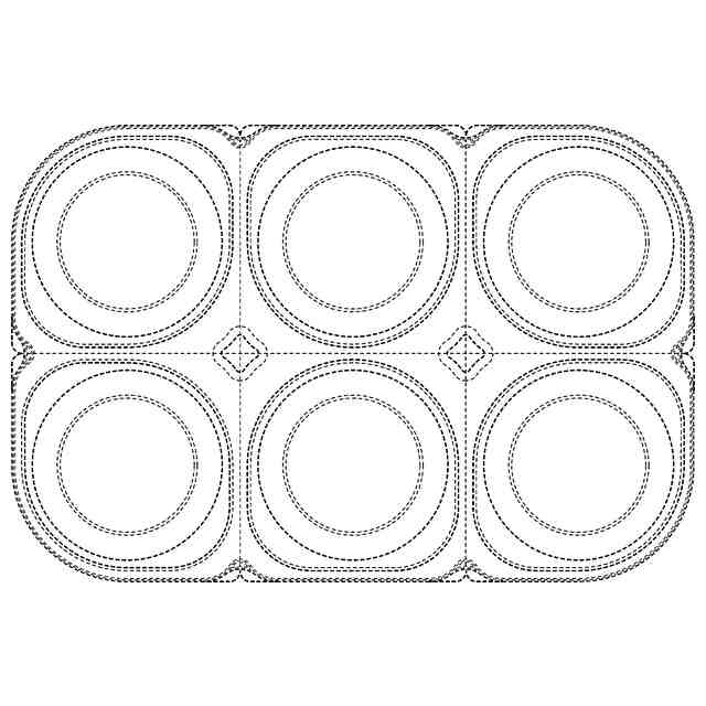 意匠に係る物品は、食品用トレーである。本物品は、複数のカップを有し、各カップに、冷凍パスタなどの食品が収容される。