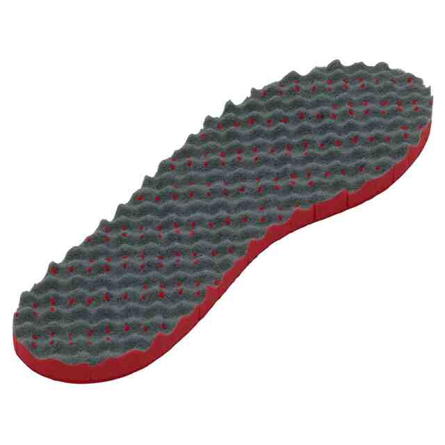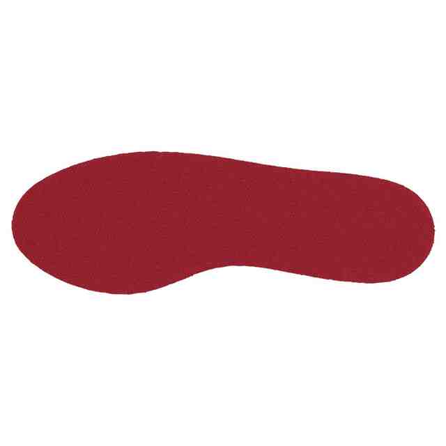 左右対称で一対のインソールの右方(右足用)のみを表す。赤色以外で表した部分が、部分意匠として意匠登録を受けようとする部分である。底面図及び斜視図に表された濃淡は、いずれも立体表面の形状を特定するためのものである。