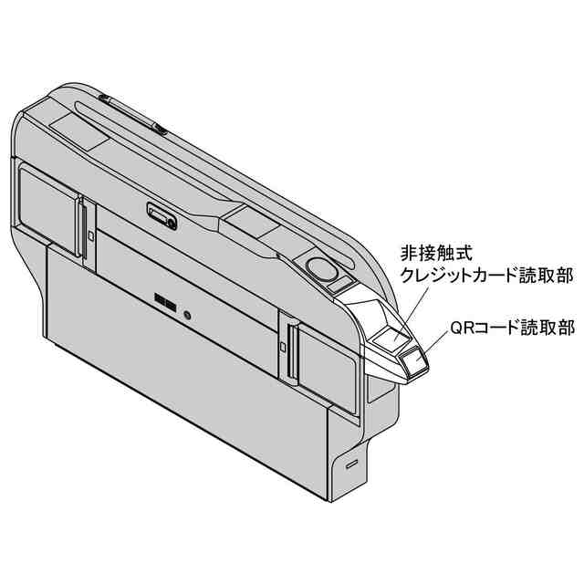 本物品は、非接触式クレジットカード読取部とQRコード読取部を有する自動改札機である。