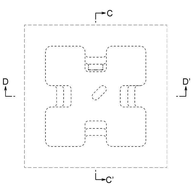 一点鎖線で囲まれた部分が、意匠登録を受けようとする部分である。一点鎖線は、意匠登録を受けようとする部分とそれ以外の部分との境界を表わすものである。A-A’,B-B’拡大図、A-A’,B-B’拡大斜視図、D-D’断面図を含めて意匠登録を受けようとする部分を特定している。C-C’断面図では、実線で示された部分が意匠登録を受けようとする部分である。C-C’断面図を含めて意匠登録を受けようとする部分を特定している。