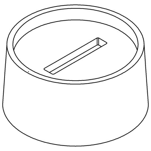 本物品は、アクリルスタンドなどのキャラクターが印刷された装飾プレートを立設させるための装飾用スタンドの台座である。本物品は、各部名称を示す参考斜視図に示すように、円筒状の周壁と円盤状の天板を備えたキャップ状の台座であり、天板に形成された長方形状の貫通穴に、装飾プレートの凸部を差し込んで、使用状態を示す参考斜視図に示すように、装飾プレートを立設させ、装飾プレートの台座として使用される。