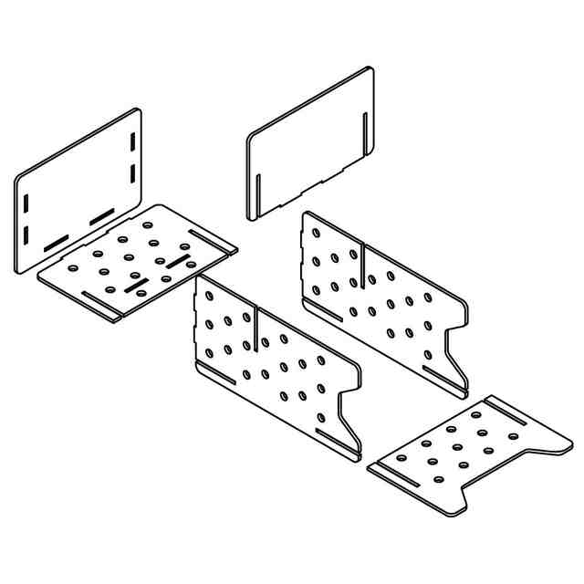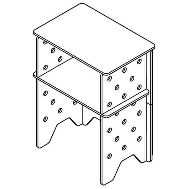 本物品は、複数の板材を組み立てて設けられる机である。本物品は、一対の側版と、一組の背面板と、中間板と、天板と、を備える。本物品は、一対設けられた側板の溝に上下から背面板を差込み、さらに手前側から中間板を差し込んだうえで、天面に天板を嵌め込むことで形成される。ここで、天板と背面板及び中間板と背面板とは当接する部分に凹部と突起が設けられ、それぞれ篏合する。
