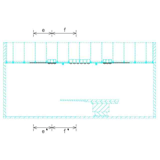 意匠登録を受けようとする部分を黒色の実線でそれ以外の部分を青色の破線で表した。赤色の一点鎖線は、意匠登録を受けようとする部分とそれ以外の部分との境界のみを示すものである。各断面図、各端面図とエア吹出口を表した状態の各図及びこれらの拡大図以外の図において、クリーンエア吹出パネルに設けられたエア吹出口(複数小孔)を省略している。正面・底面・左側面側からの斜視図は、正面及び左側面側の壁と床を省略した状態で表している。正面図、背面図、左右側面図は、各図手前に表れる壁を、底面図は床を省略した状態で表している。左側面側からの透視図、血管撮影装置を手術台に設置した状態の各図においては、断層撮影装置を省略して表している。A-A拡大断面図は左に90度回転させて表している。A-A拡大断面図及びB-B拡大断面図は、手術台を表した状態で表している。各断面図、各端面図において、内部構造及び内部機構を簡略化して表している。床や壁、天井内部は簡略化して表している。登録を受けようとする部分を示す参考図において、意匠登録を受けようとする部分に薄墨を施した。透光性を有する部分を示す参考図において薄墨を施した部分は面発光照明部分であり、透光性を有する。透明部を示す参考図において薄墨を施した部分は、シューティングライトのドーム状前面カバーであって透明である。なお、血管撮影装置を手術台に設置した状態の各図は、血管撮影装置本体を移動体とともに移動レールに沿って移動させ、手術台の方向に合わせて回動させた状態を表している。