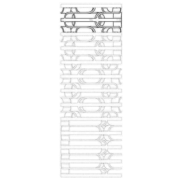 本物品は、カテーテル本体のレイヤーの長手方向のセグメントであり、カテーテルの内部に使用される内部補強材である。使用状態の一例を示す各参考図に示されるように、屈曲の中でもカテーテルの内腔の潰れを抑え、また、ピッチ幅を変化させることによって優れたプッシャビリティを実現することができる。