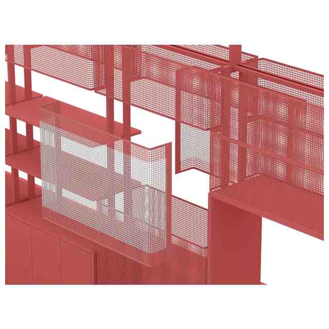 赤色で着色した部分以外の部分が、意匠登録を受けようとする部分である。なお、各部分拡大斜視図および各部分拡大図に表されない部分は、意匠登録を受けようとする部分以外の部分である。各図面の表面部全面に表された濃淡は、いずれも立体表面の形状を表す濃淡である。正面側部分拡大斜視図2の分解図は、パネルの一部を分解した状態を示す図である。
