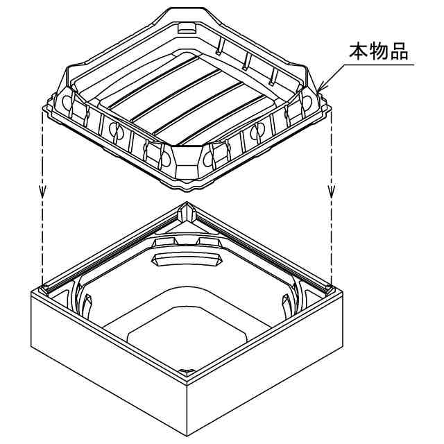 本物品は、食品を収納するための食品包装用容器の中皿であり、使用状態を示す参考図の通り、他の容器の内側に設置されて使用される。