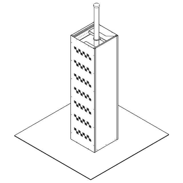 本物品は、配電ボックス等を取り付けるためのポールに配設されたケーブルを、盗難等から保護するために設置するケーブル保護具である。本物品は、「使用状態を示す参考図」及び「使用状態における内部構造を示す参考図」に示すように、ポールの四方を金属製のパネルで囲むことによって、ケーブルの切断や引き抜き等の行為を防ぐものである。正面のパネルには、本物品内部の視認性を高めるための貫通孔が複数設けられている。