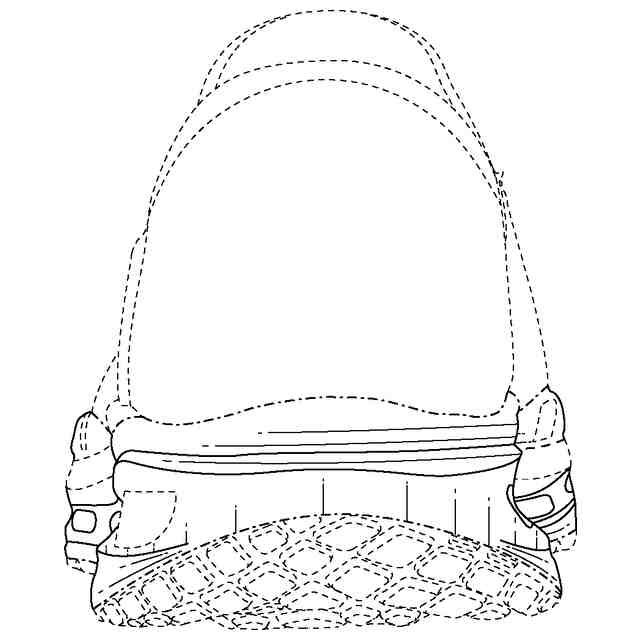 実線で表された部分が、意匠登録を受けようとする部分である。一点鎖線は、意匠登録を受けようとする部分とその他の部分との境界のみを示す線である。図面に表されている破切れた細線は、模様を表す線ではなく、いずれも立体表面の形状を表す線である。
