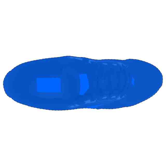 青色で着色した部分以外の部分が、意匠登録を受けようとする部分である。一点鎖線は、意匠登録を受けようとする部分とその他の部分との境界のみを示す線である。各図の表面部全面に表された濃淡は、いずれも立体表面の形状を特定するためのものである。