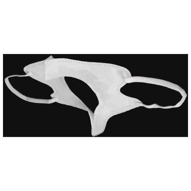 意匠を受けようとする物品は、酸素吸入マスクを装着する際、使用者の寝返り等により、装着された酸素吸入マスクがずれるのを防止し、尚且つ酸素吸入マスクの中の鼻及び口元の状態が確認できる様にした酸素吸入マスクの固定用補助具である。補助具の構造は、通常のマスクの中心部分をカットした形状で、カットされた穴に酸素吸入マスクを装着する。カットしたマスクのゴム紐を使用者の耳に装着する。カットしたマスクの裏側には両面テープが設けられており、酸素吸入マスクと補助具がしっかり固定される。
