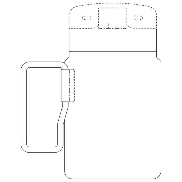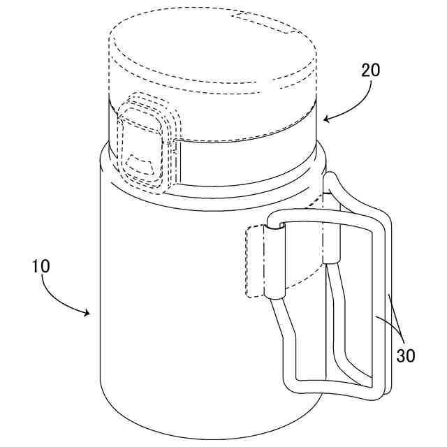 実線で表した部分が、意匠登録を受けようとする部分である。一点鎖線は、意匠登録を受けようとする部分とその他の部分との境界を示す線である。飲料容器本体10の材質はステンレスである。