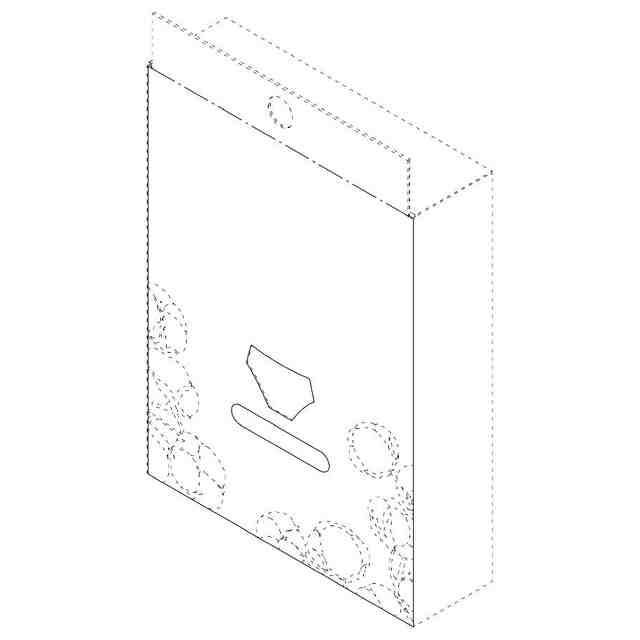 実線で表した部分が、部分意匠として意匠登録を受けようとする部分である。一点鎖線は、部分意匠として意匠登録を受けようとする部分とその他の部分との境界のみを示す。縮小斜視図を含めて意匠登録を受けようとする部分を特定している。開口部を示す参考図において、薄墨を施した部分は開口部である。