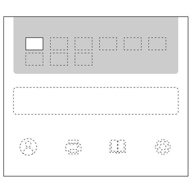 部分意匠として意匠登録を受けようとする部分を実線で、それ以外の部分を破線で表している。各図において、暗調子で表された部分は明度差を表現したものである。