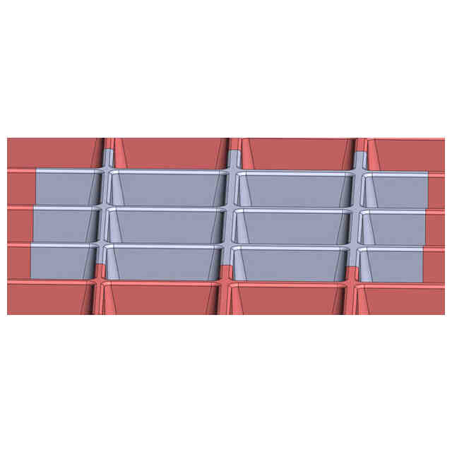 背面図は正面図と同一のため省略する。左側面図は右側面図と同一のため省略する。各図面の表面部全面に表された濃淡は、いずれも立体形状を特定するためのものである。赤色で表された部分以外の部分が部分意匠として意匠登録を受けようとする部分である。赤色で着色した部分と部分意匠として意匠登録を受けようとする部分との境界線は、形状線を表すものではなく、境界のみを示す線である。リブ厚を示す参考図において、緑色はリブ厚が太い領域を、青色はリブ厚が細い領域を示す部分である。
