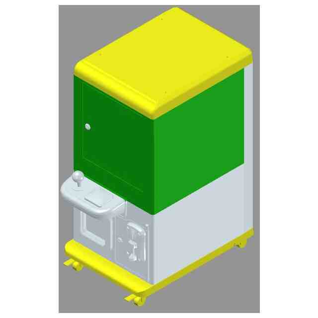 本物品は、本体天井側から吊り下げられた昇降可能なクレーンによって、景品を把持懸垂し、景品落し口に移動させて落とすことにより、景品を獲得することができるクレーンゲーム機である。このクレーンゲーム機は、筐体正面側の下部に、操作パネル、コイン投入部及び景品取り出し部等が設けられている。クレーンゲーム機は、単体で配置することもできるし、「上下に連接した状態を右上から見た参考斜視図」に示すように、2つを上下2段に配置することもできるし、また、3つ以上を上下3段以上に配置することもできる。